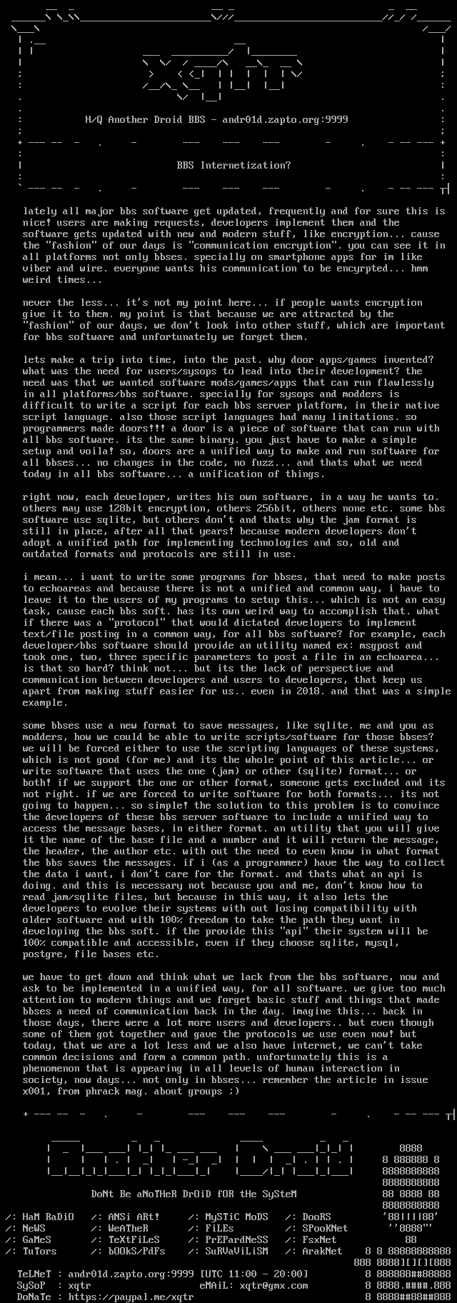 : H/Q Another Droid BBS - andr01d.zapto.org:9999 :