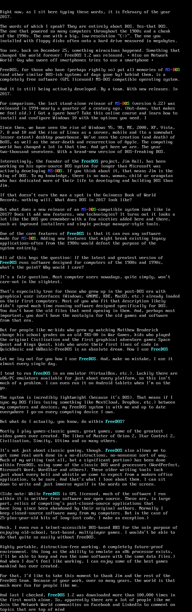 Its not just about classic gaming, though. FreeDOS also allows me to