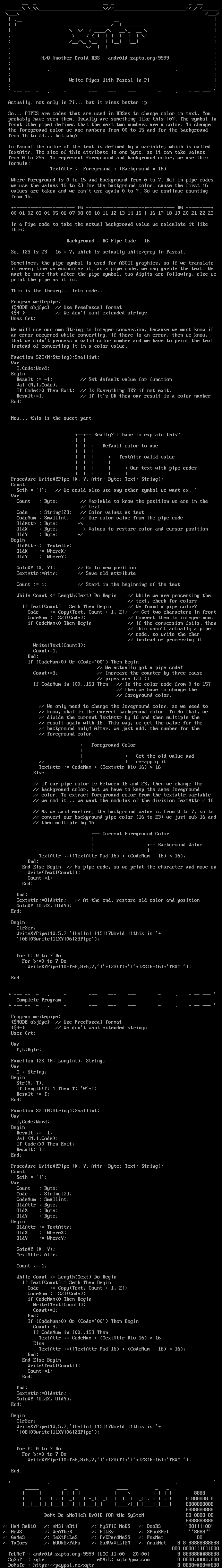 So... PIPES are codes that are used in BBSes to change color in text. You