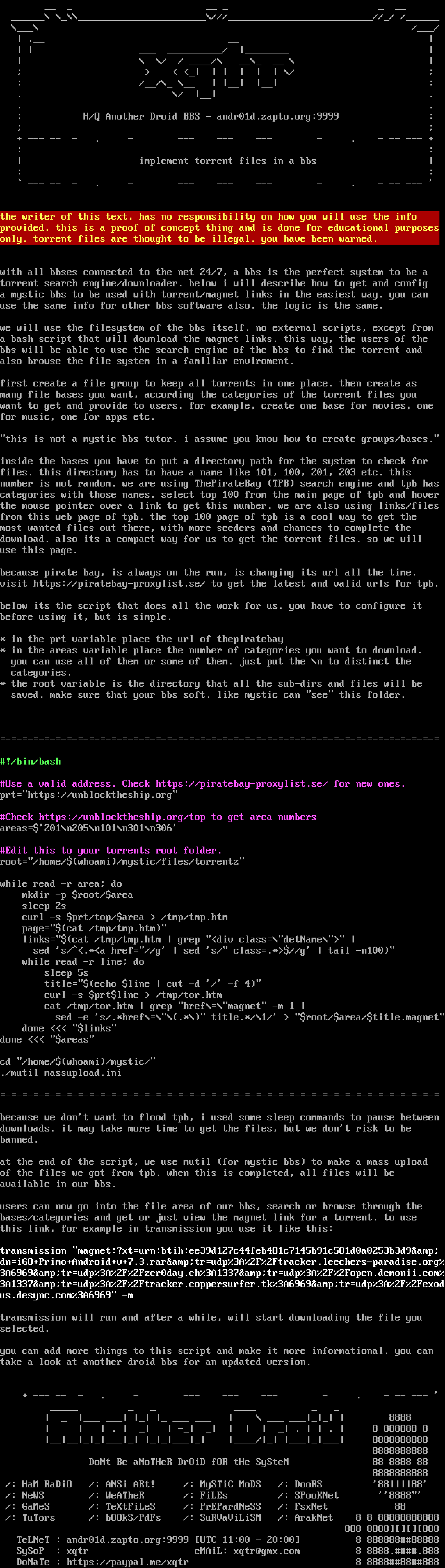 a mystic bbs to be used with torrent/magnet links in the easiest way. you can