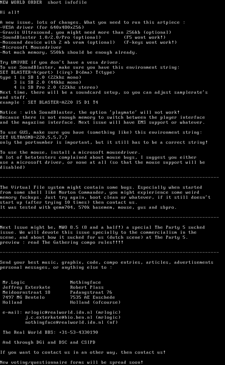 Send your best music, graphix, code, compo entries, articles, advertisements