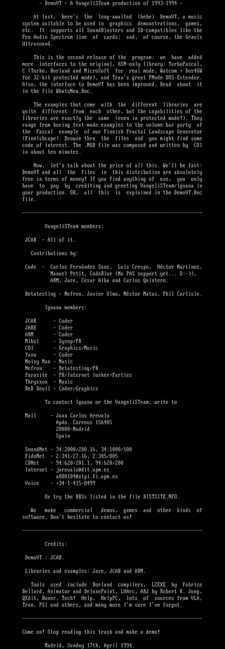 - DemoVT - A VangeliSTeam production of 1993-1994 -