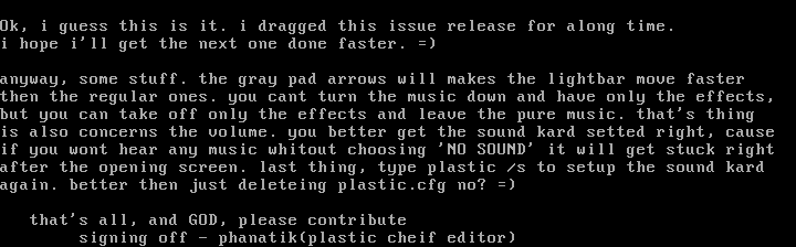 after the opening screen. last thing, type plastic /s to setup the sound kard