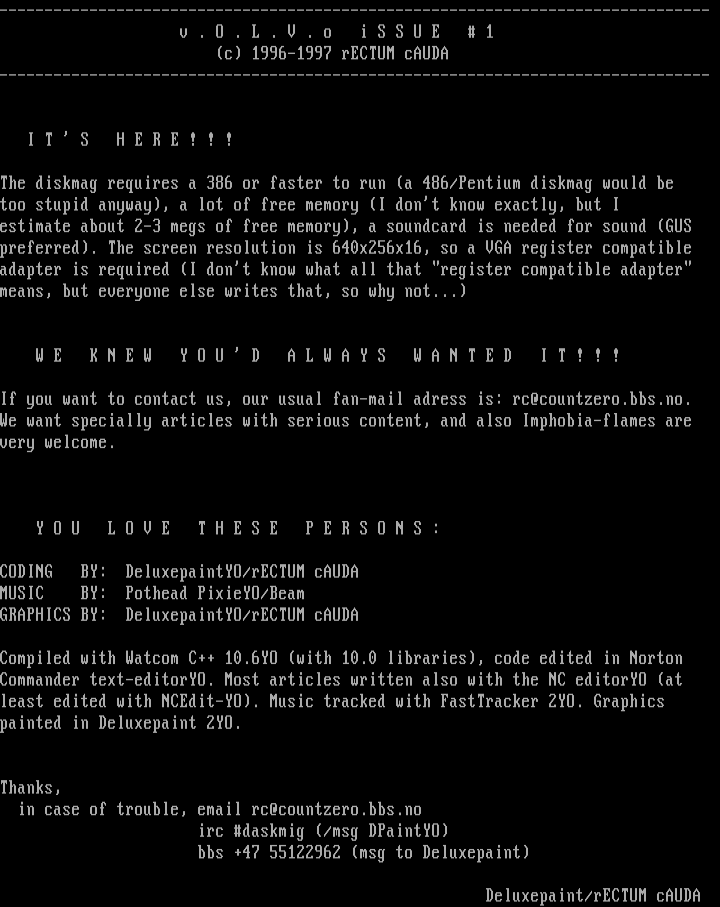 The diskmag requires a 386 or faster to run a 486/Pentium diskmag would be