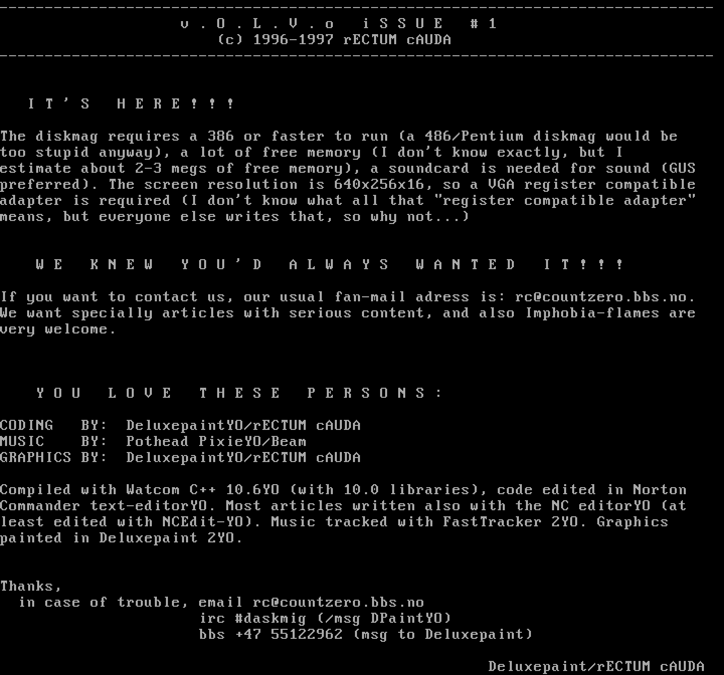 in case of trouble, email rc@countzero.bbs.no