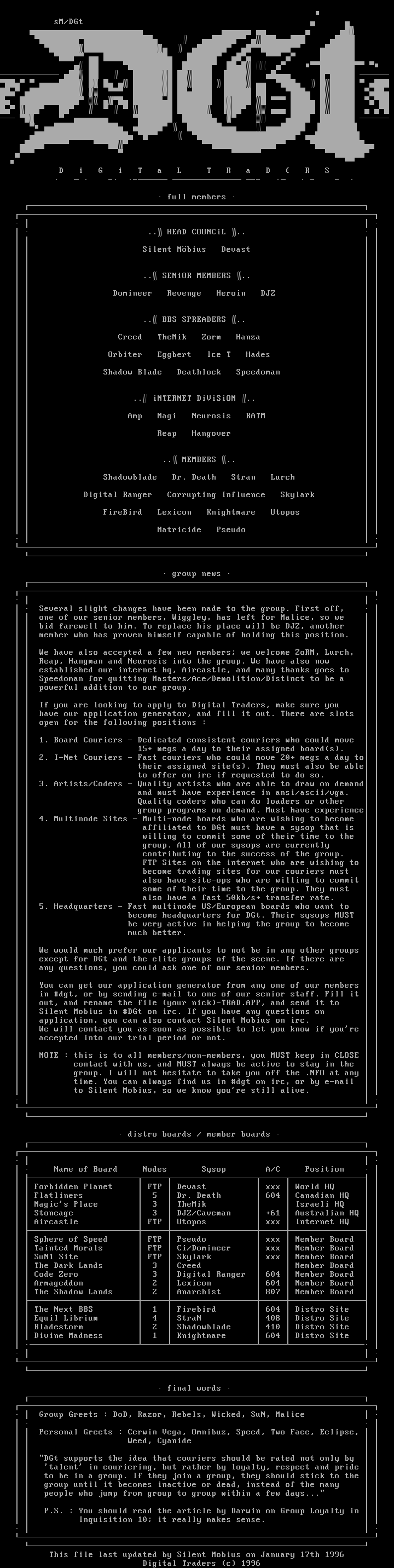 This file last updated by Silent Mobius on January 17th 1996