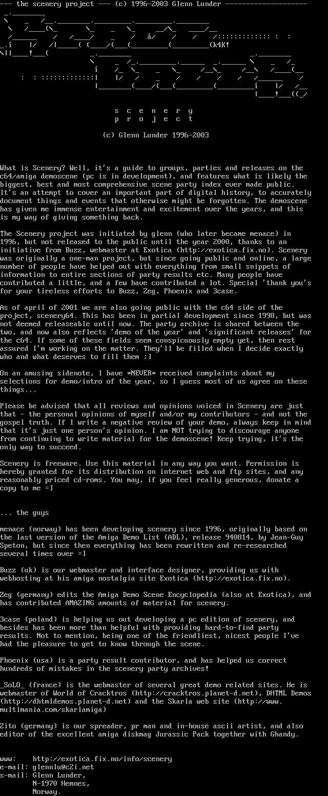 What is Scenery? Well, its a guide to groups, parties and releases on the