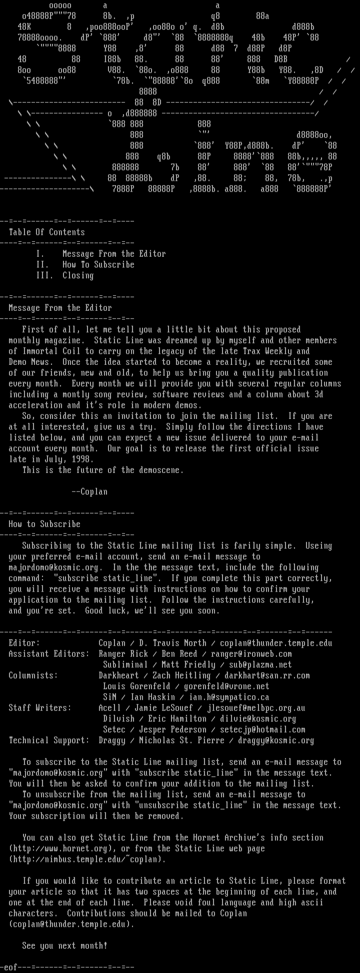 majordomo@kosmic.org with subscribe staticline in the message text.