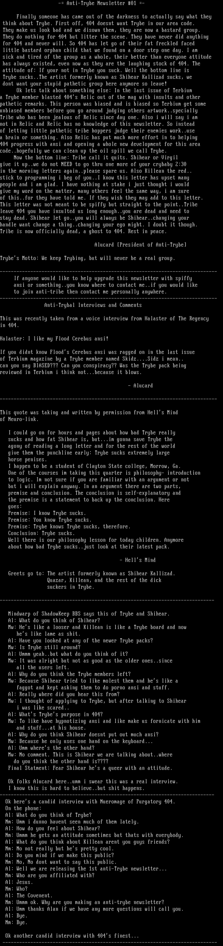 Al: Well we are releasing the 1st anti-Trybe newsletter...