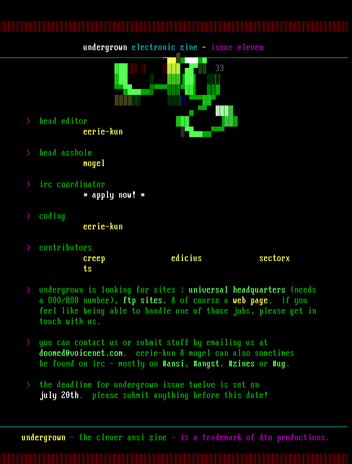 undergrown - the clever ansi zine - is a trademark of dto productions.
