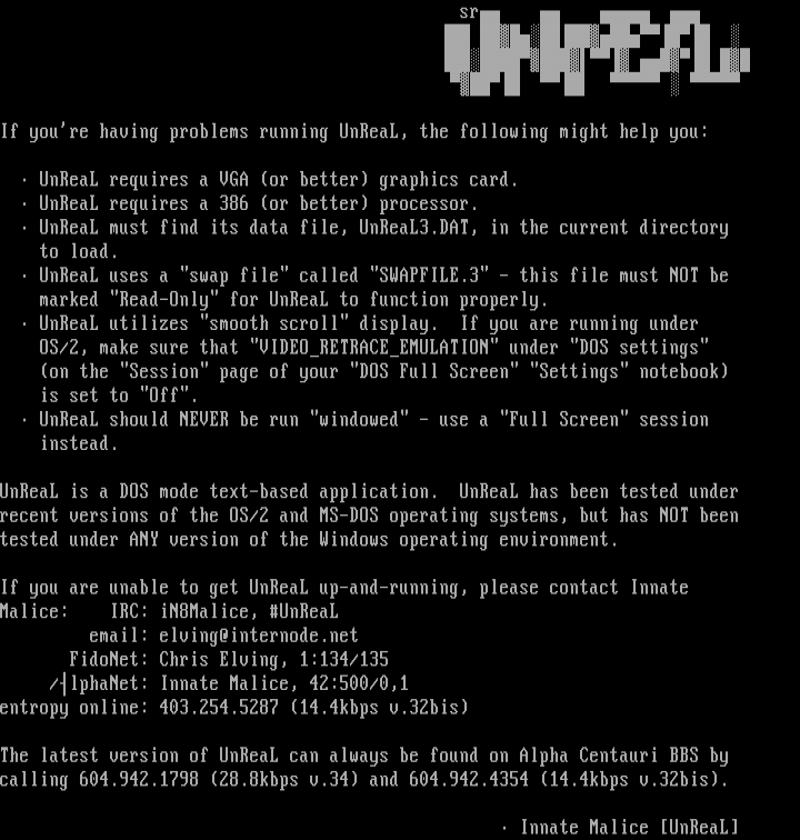 UnReaL is a DOS mode text-based application. UnReaL has been tested under