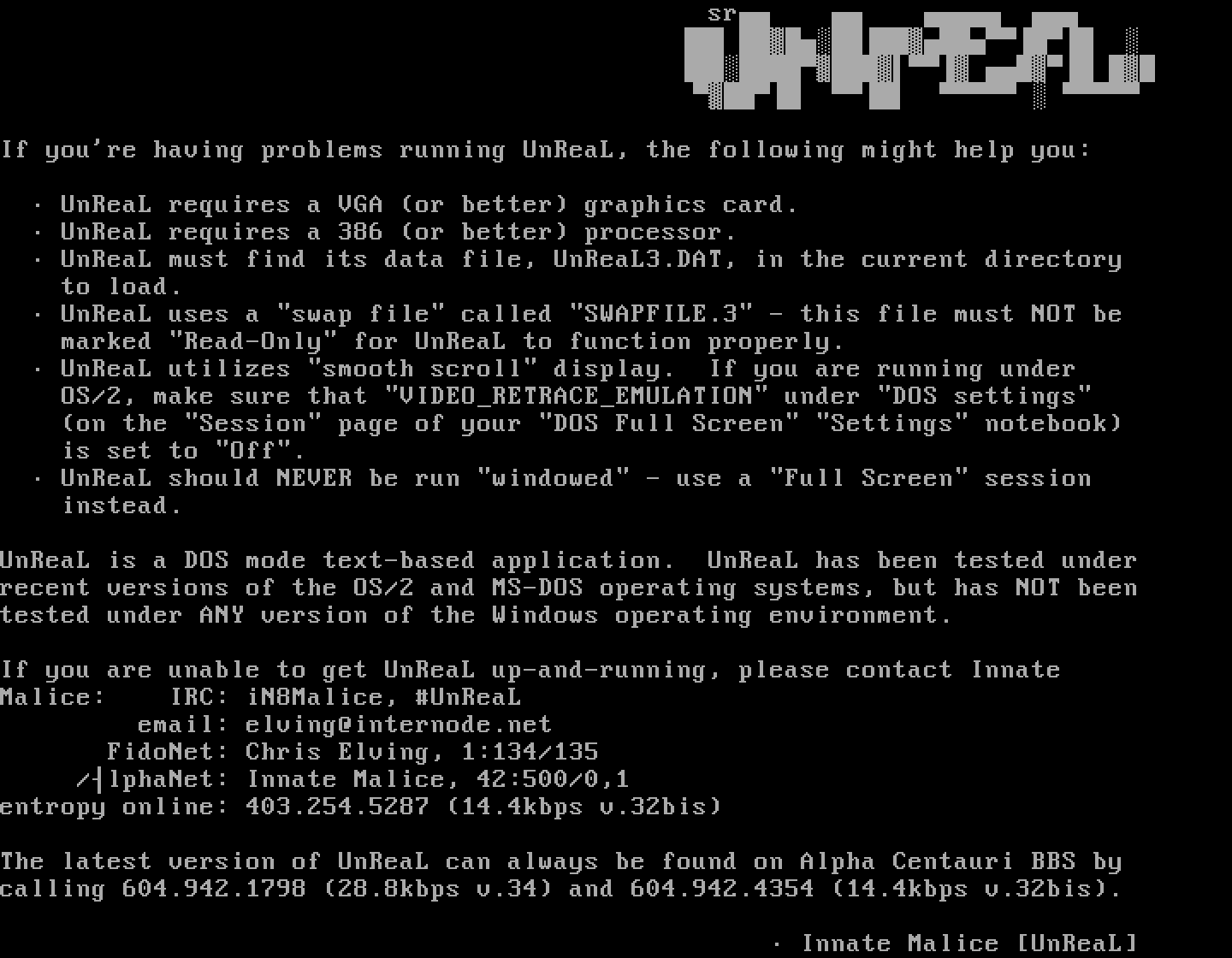 The latest version of UnReaL can always be found on Alpha Centauri BBS by
