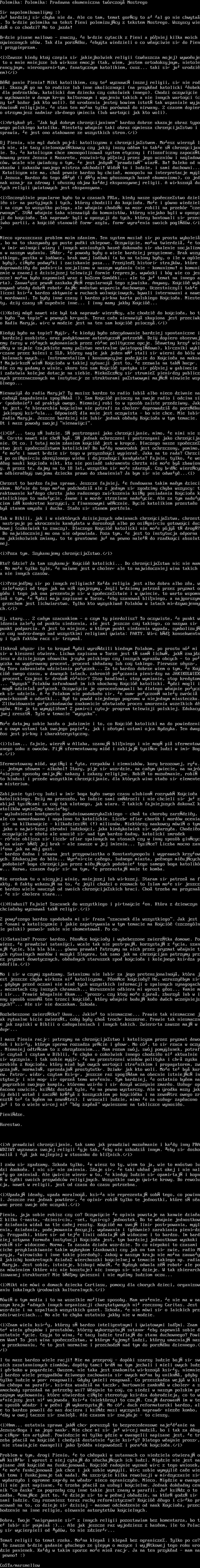 iZawsze kiedy kto czepia si jakiejkolwiek religii zwaszcza mojej wywouje to u mnie mniejsze lub wiksze emocje tak, wiem, jestem ortodoksyjnym, nietolerancyjnym, nierozgarnitym, fanatycznym katolikiem, cusz... taki si ju urodziem/i