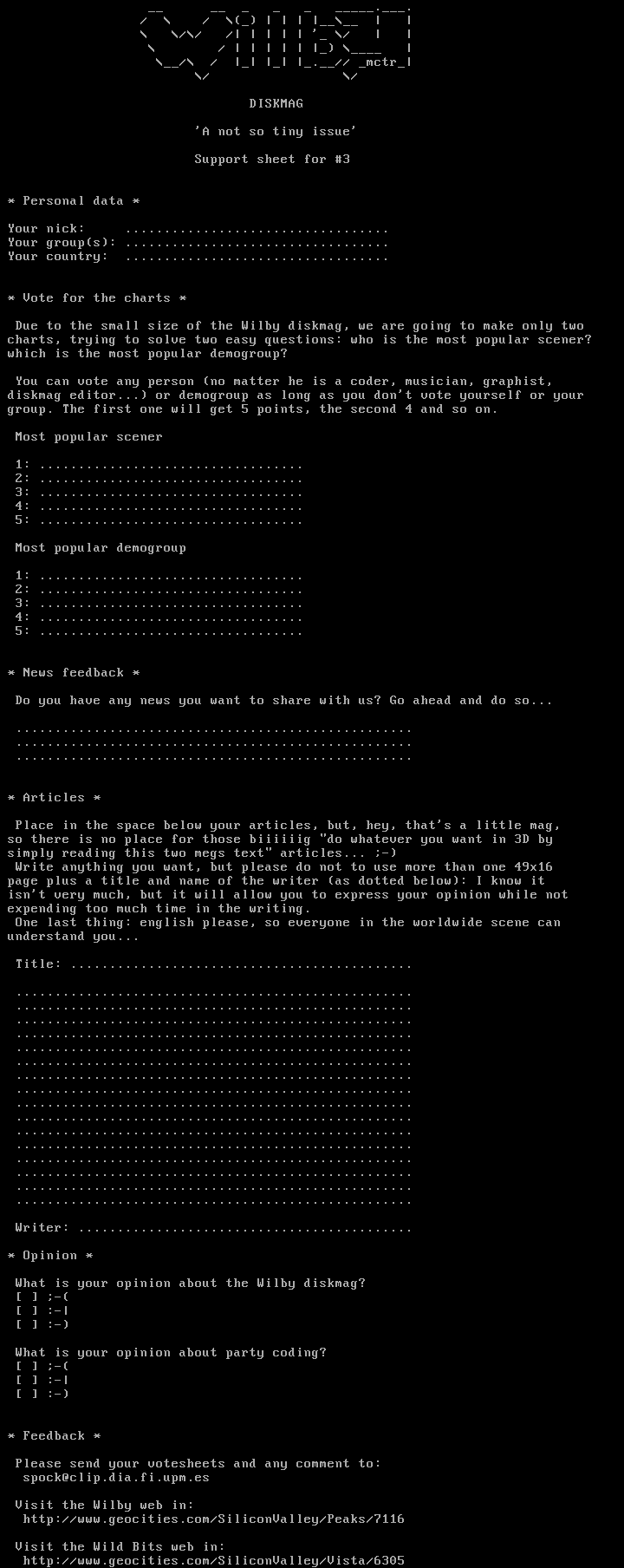 Due to the small size of the Wilby diskmag, we are going to make only two