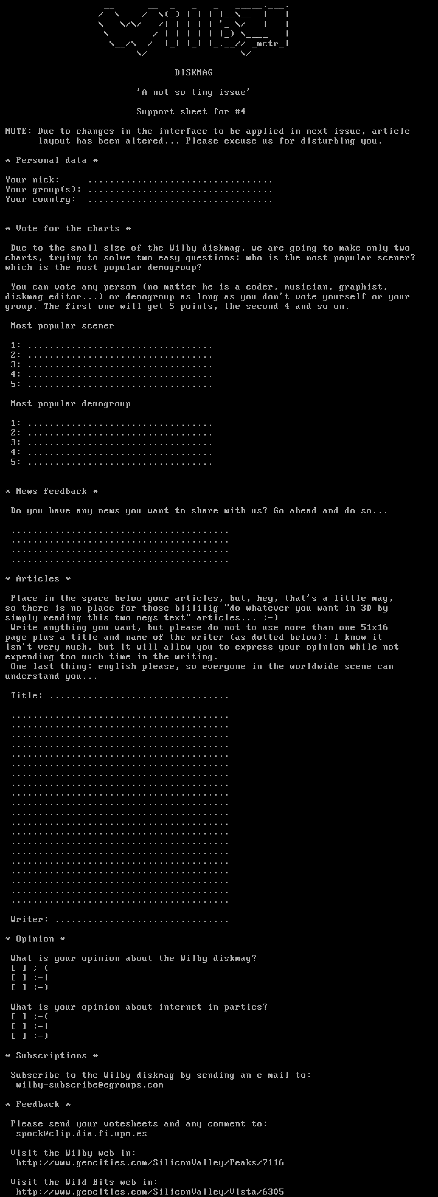 Subscribe to the Wilby diskmag by sending an e-mail to: