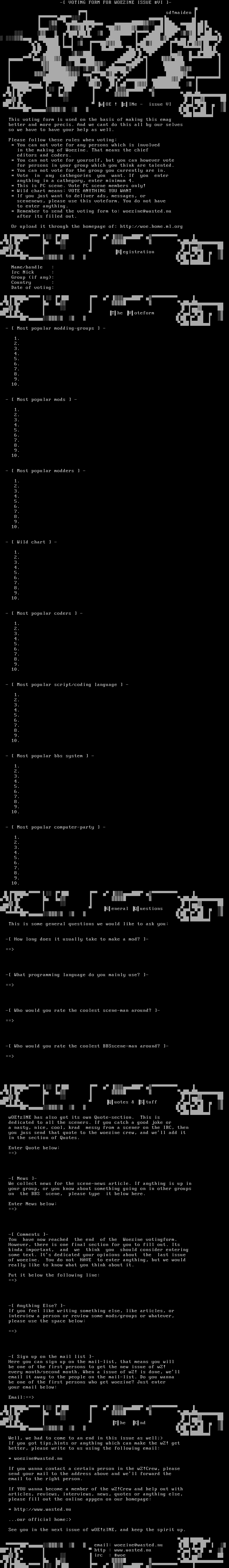 * Remember to send the voting form to: woezine@wasted.nu