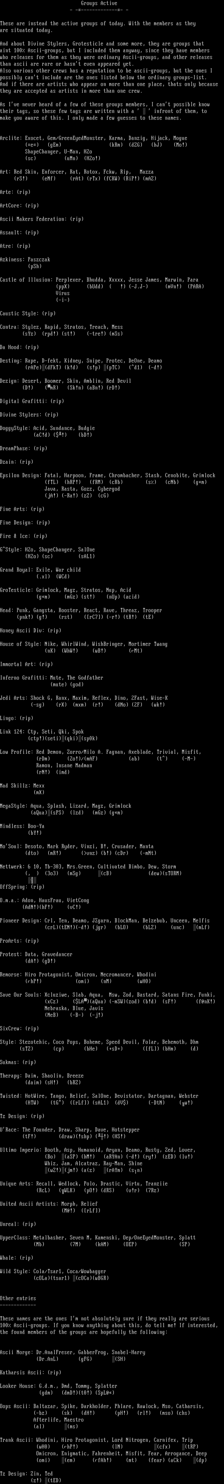 Also various other crews has a reputation to be ascii-groups, but the ones I