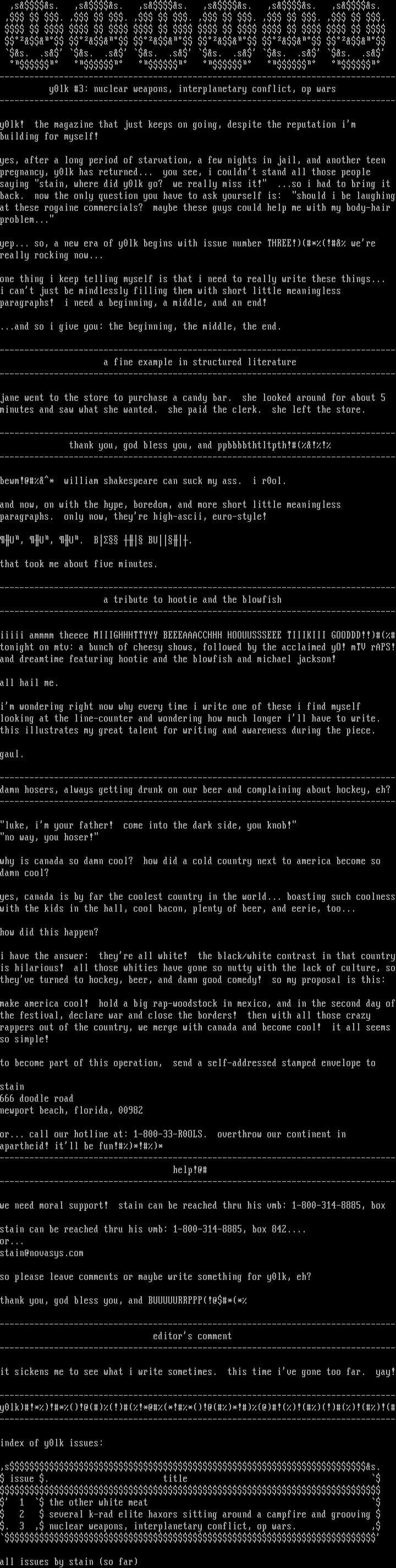 yep... so, a new era of y0lk begins with issue number THREE!*! were