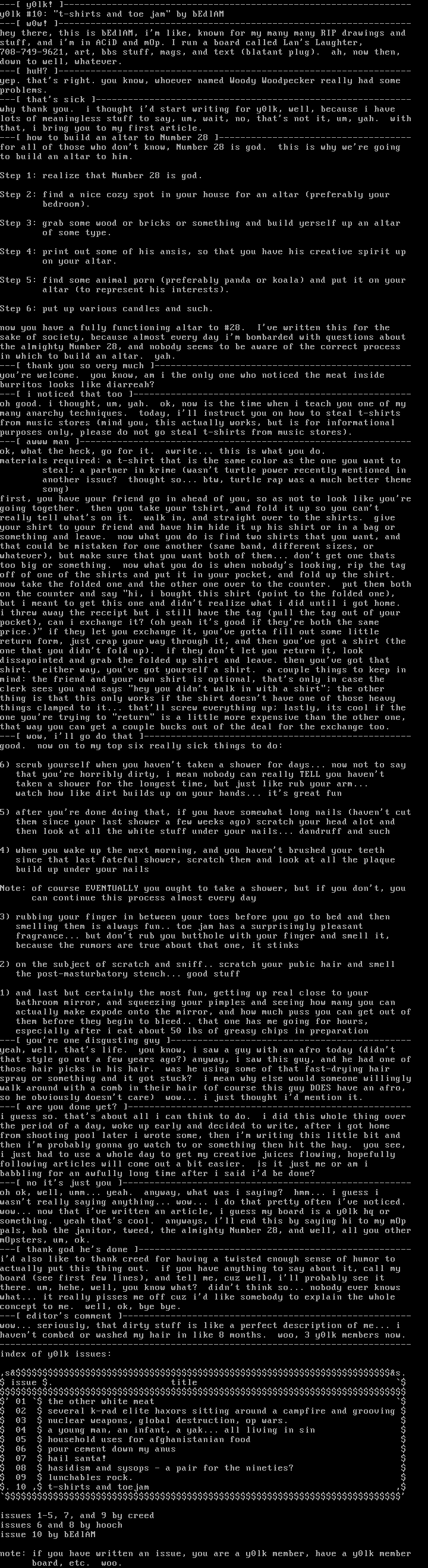 y0lk 10: t-shirts and toe jam by bEdlAM