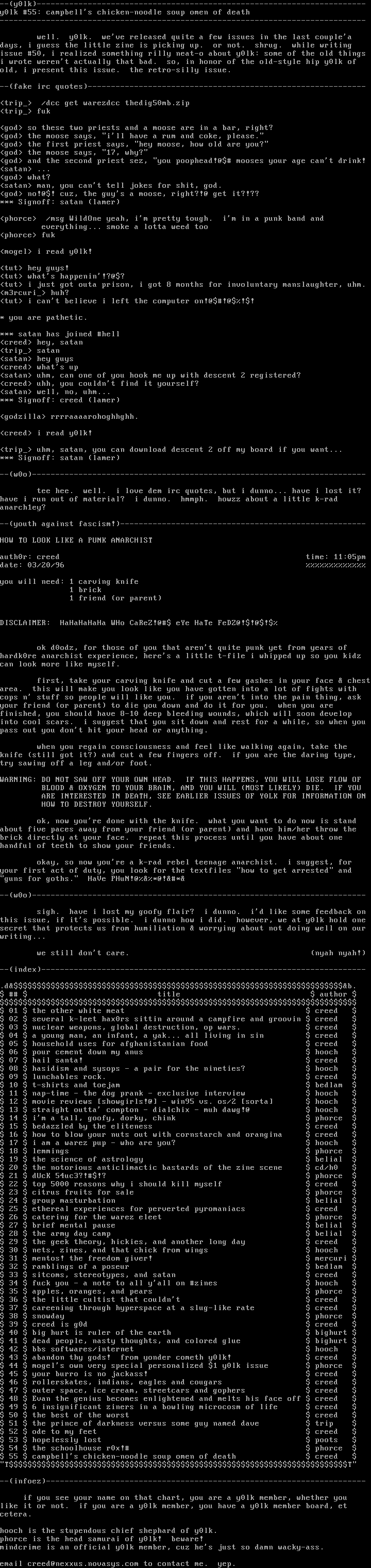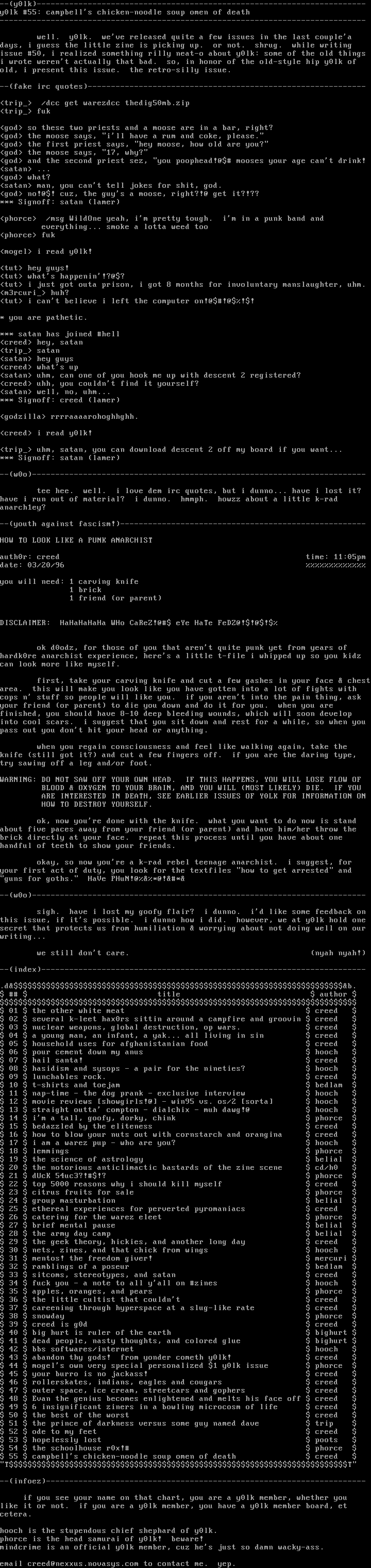 issue 50, i realized something rilly neat-o about y0lk: some of the old things