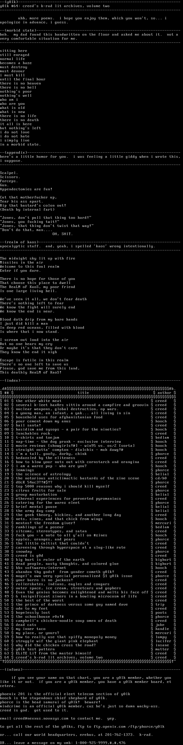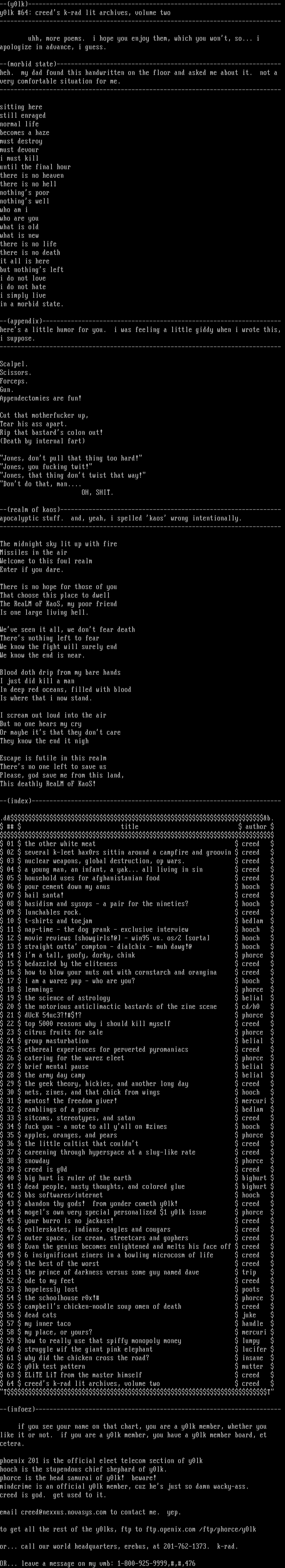 to get all the rest of the y0lks, ftp to ftp.openix.com /ftp/phorce/y0lk