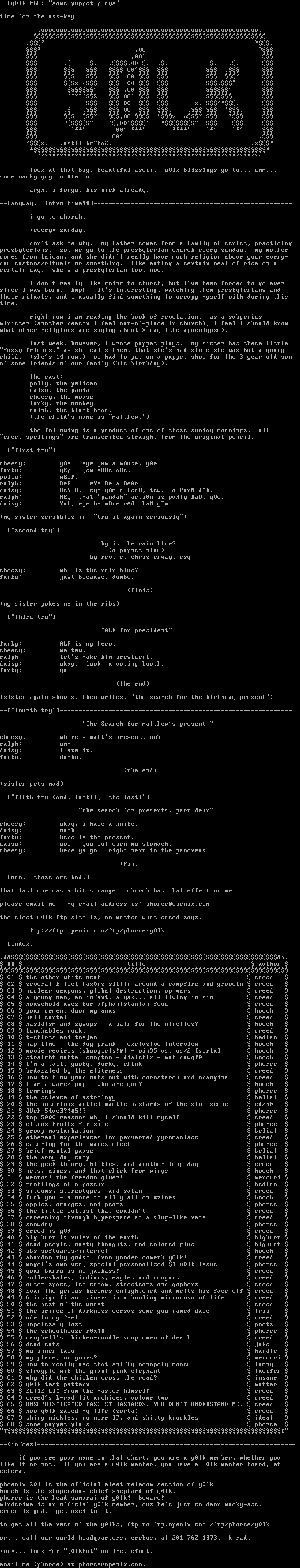 to get all the rest of the y0lks, ftp to ftp.openix.com /ftp/phorce/y0lk