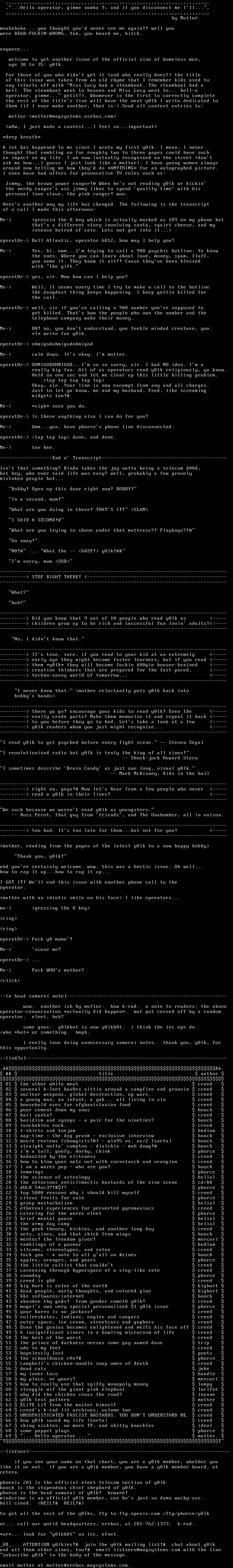 to get all the rest of the y0lks, ftp to ftp.openix.com /ftp/phorce/y0lk