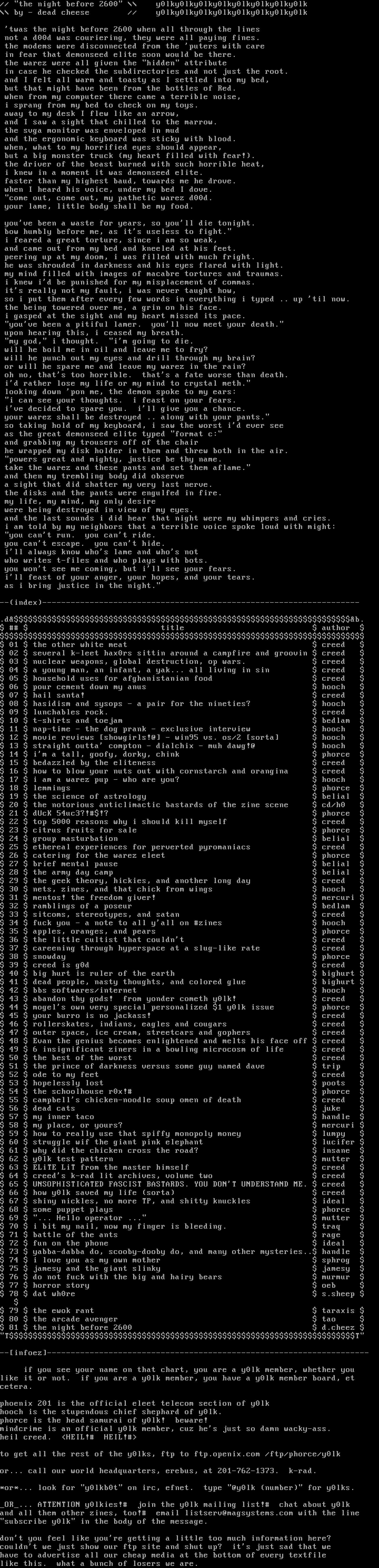 to get all the rest of the y0lks, ftp to ftp.openix.com /ftp/phorce/y0lk