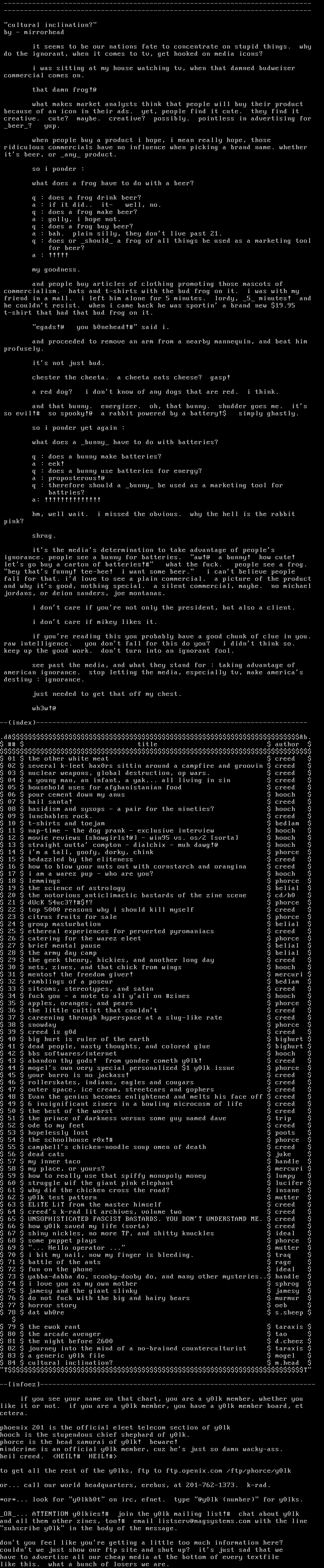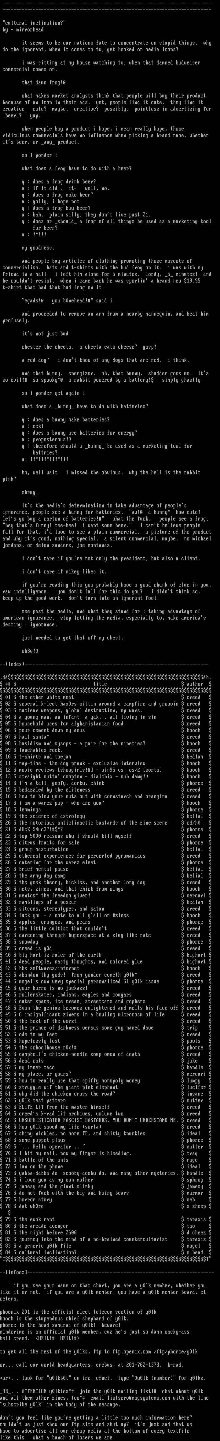 to get all the rest of the y0lks, ftp to ftp.openix.com /ftp/phorce/y0lk