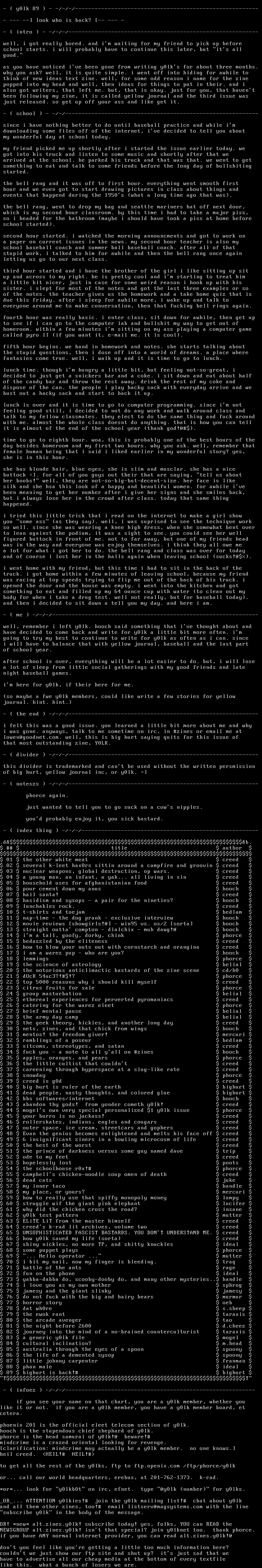 NEWSGROUP alt.zines.y0lk! isnt that special? join y0lknet too. thank phorce.