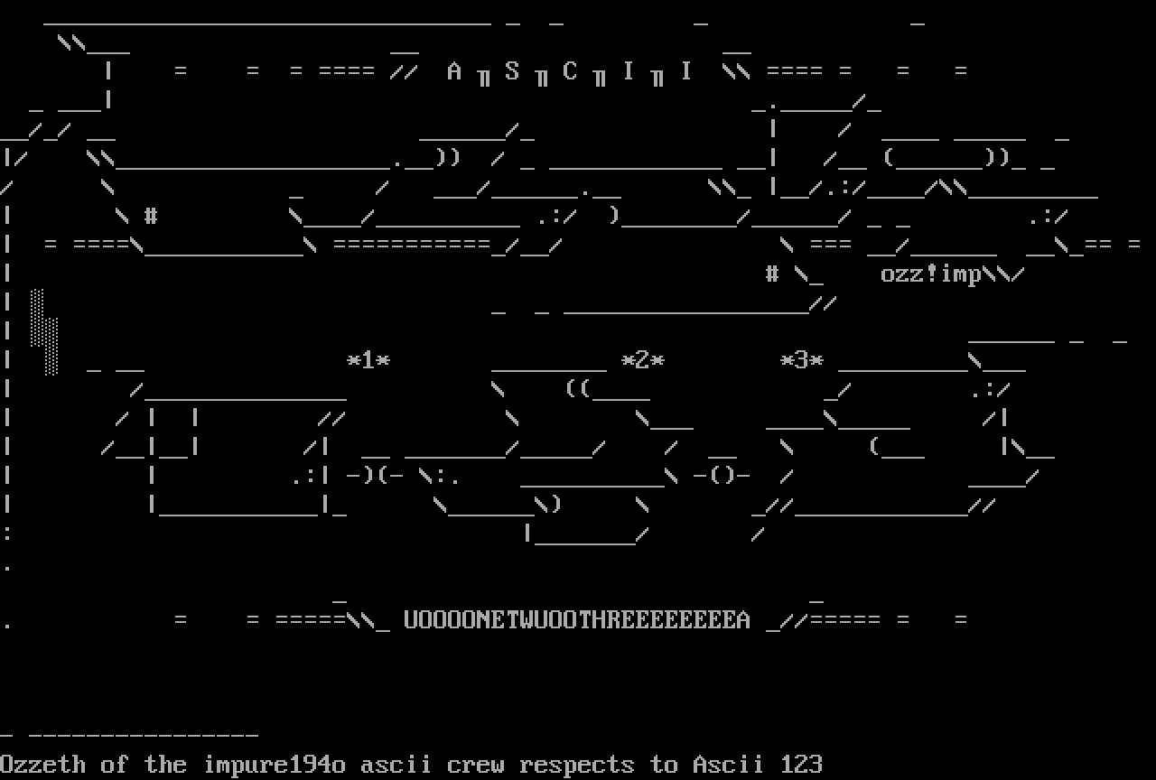 Ozzeth of the impure194o ascii crew respects to Ascii 123