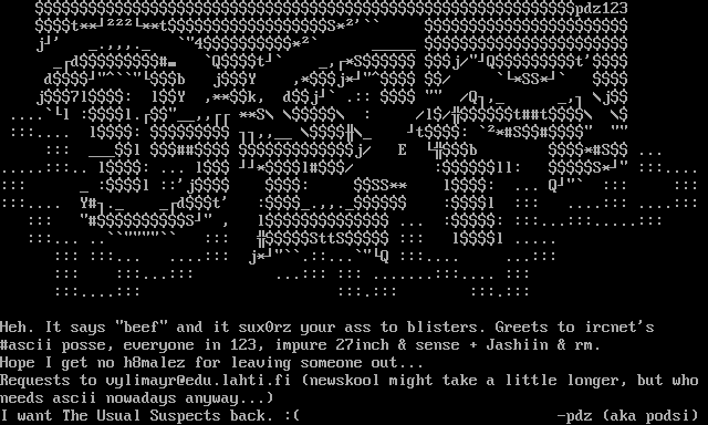 Heh. It says beef and it sux0rz your ass to blisters. Greets to ircnets