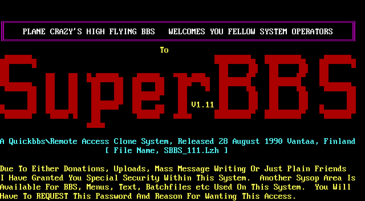 PLANE CRAZYS HIGH FLYING BBS WELCOMES YOU FELLOW SYSTEM OPERATORS
