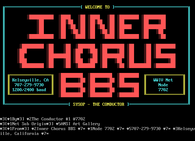 31From3 2Inner Chorus BBS 7* 1Node 7702 7* 5707-279-9730 7* 3Kelseyville, California 7*