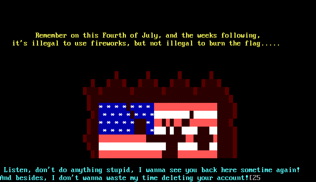 * * * *Remember on this Fourth of July, and the weeks following,its illegal to use fireworks, but not illegal to burn the flag.....