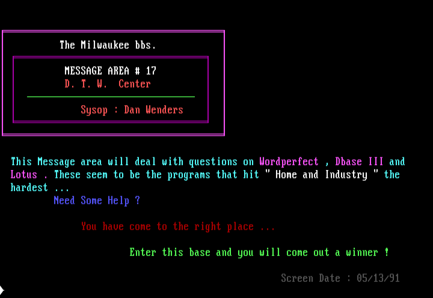 This Message area will deal with questions on Wordperfect , Dbase III and Lotus . These seem to be the programs that hit Home and Industry the
