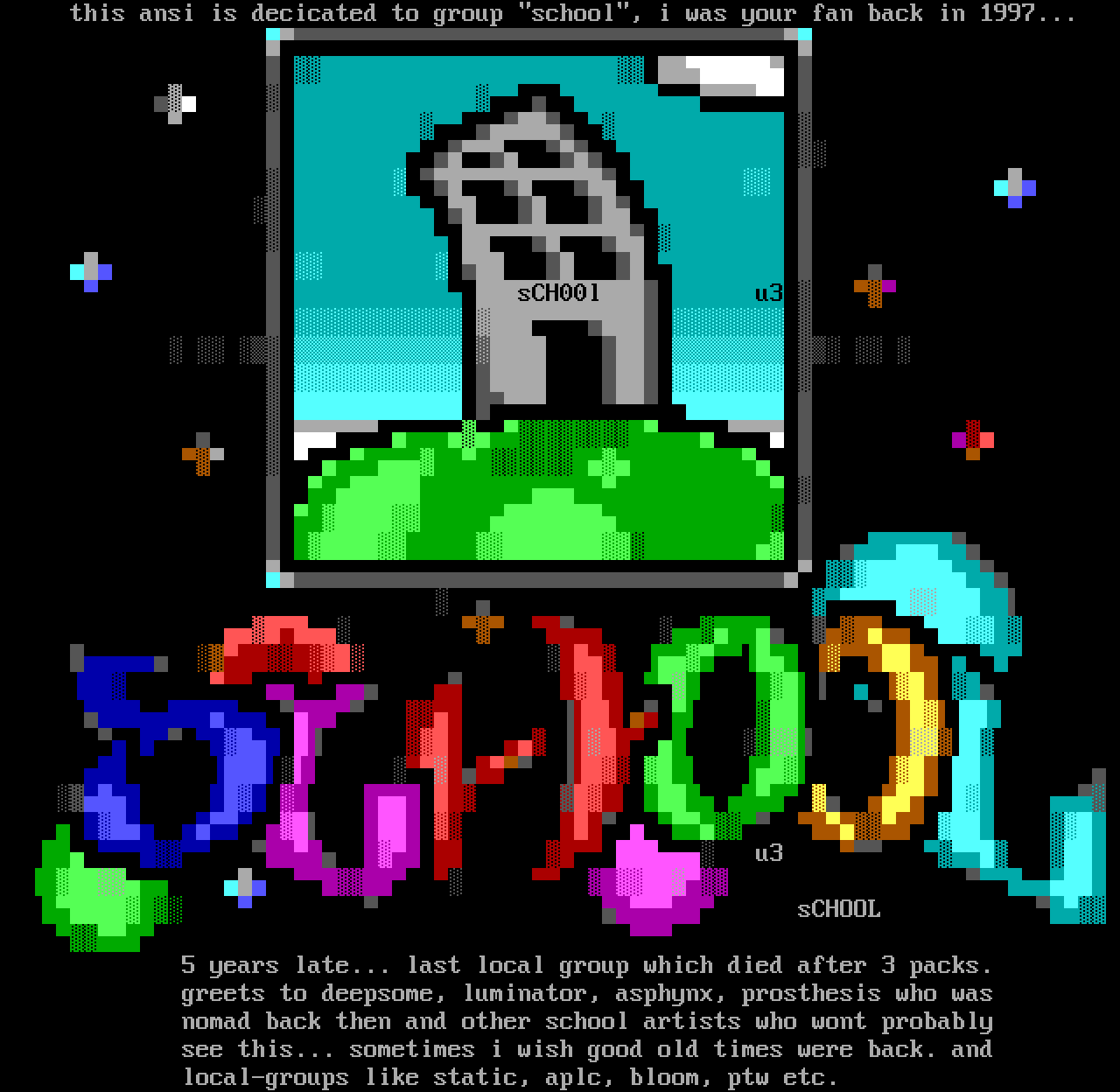 this ansi is decicated to group school, i was your fan back in 1997...