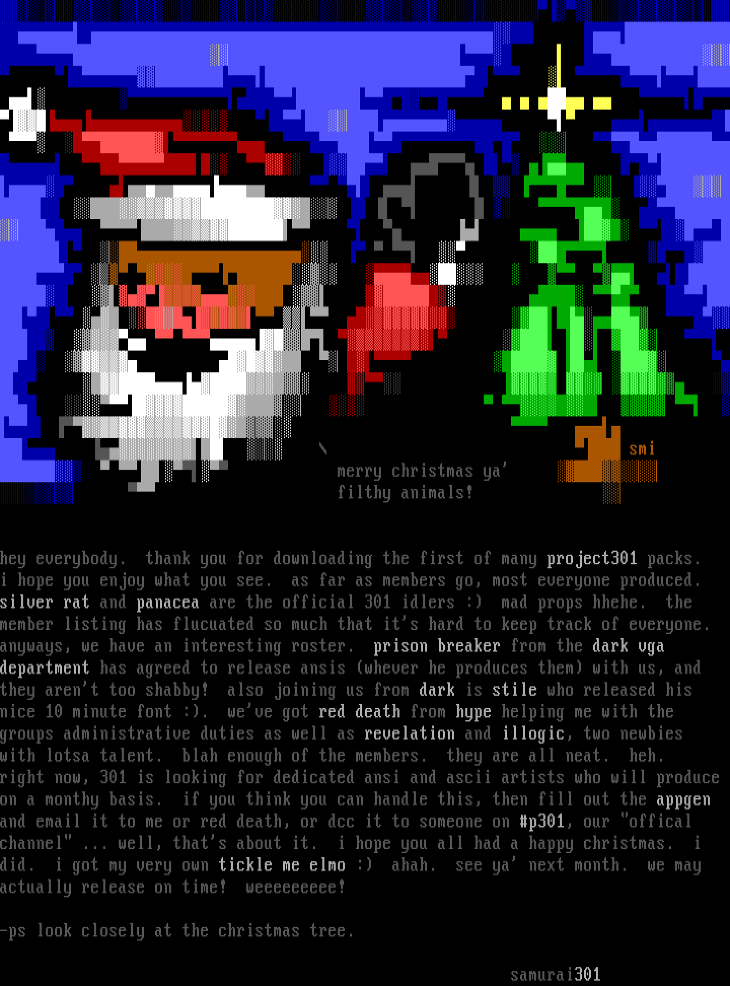 right now, 301 is looking for dedicated ansi and ascii artists who will produce