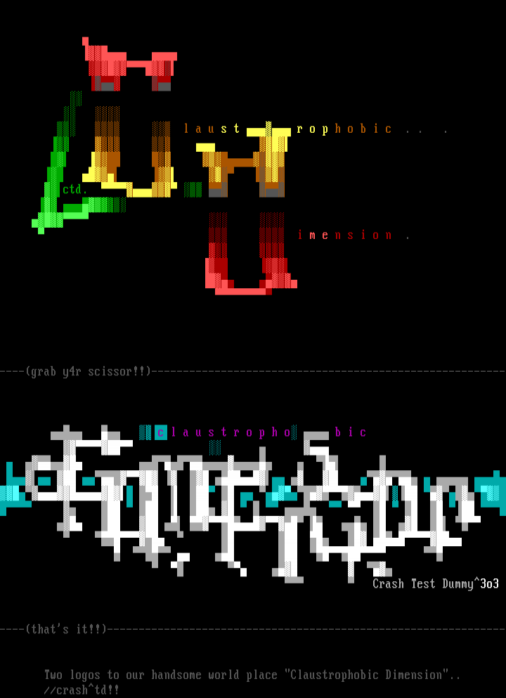 Two logos to our handsome world place Claustrophobic Dimension..