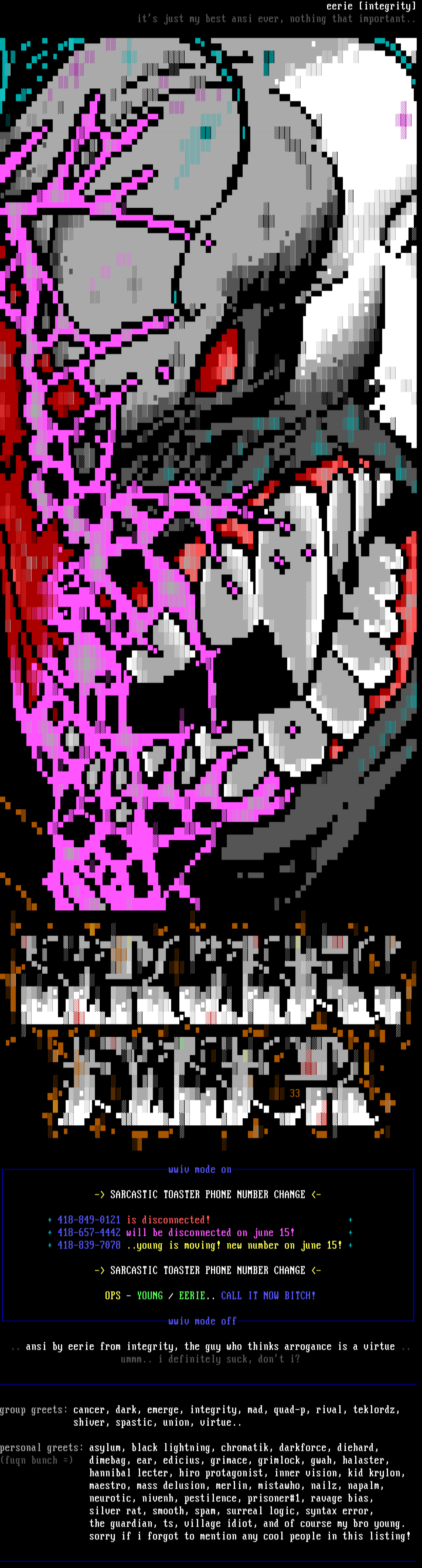 group greets: cancer, dark, emerge, integrity, mad, quad-p, rival,teklordz,