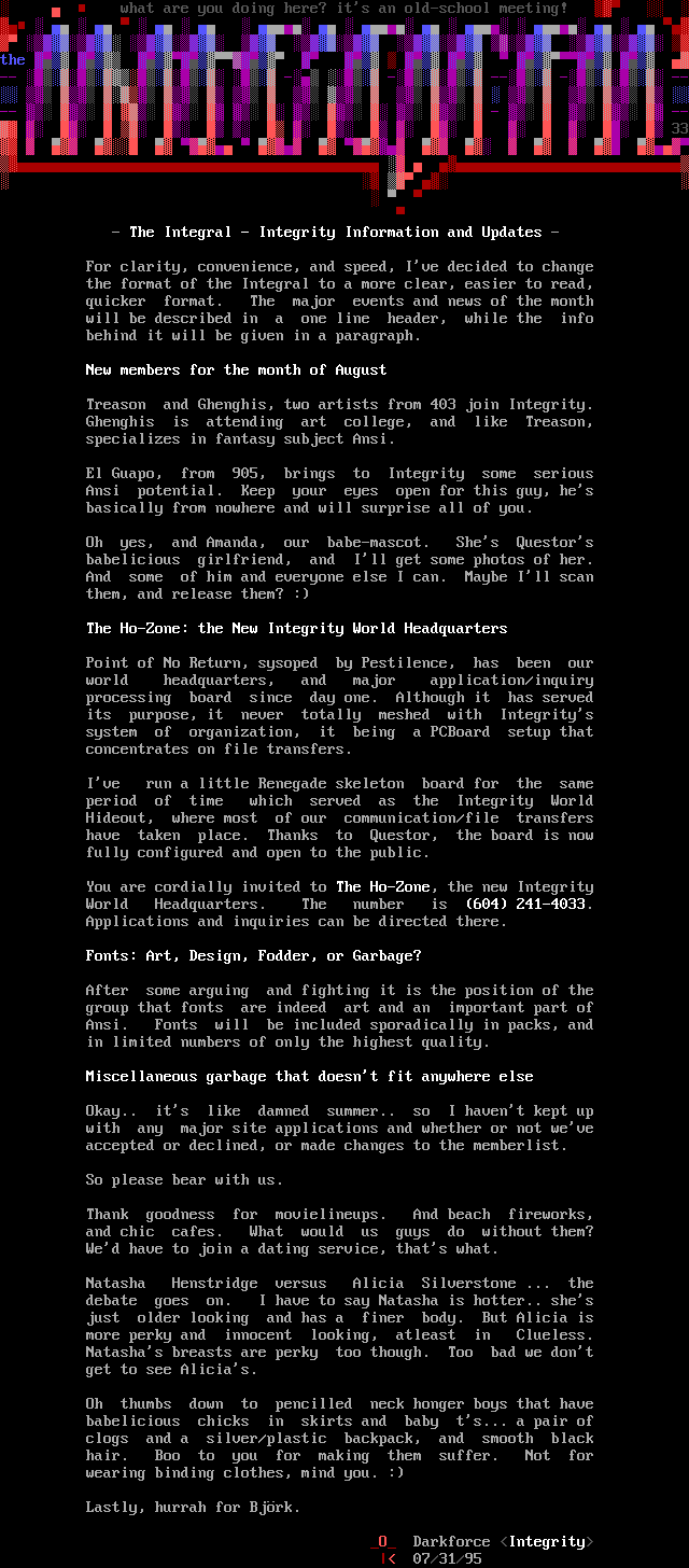 Integrity 08/95 Newsletter by Integrity 08/95