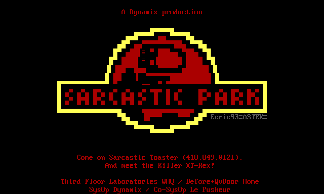 Come on Sarcastic Toaster 418.849.0121. And meet the Killer XT-Rex! Third Floor Laboratories WHQ / Before+QvDoor Home SysOp
