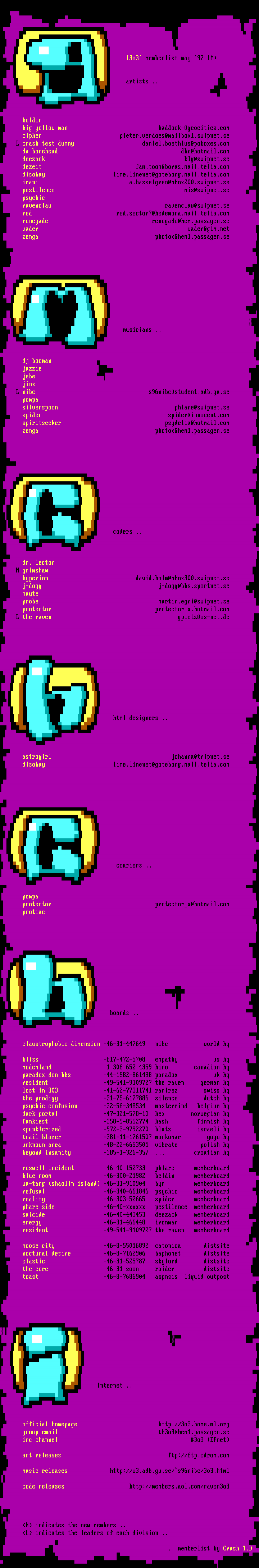 3o3memberlist may 97 !!@ artists .. beldin big yellow man haddock-@geocities.com cipher pieter.verdoes@mailbox1.swipnet.se