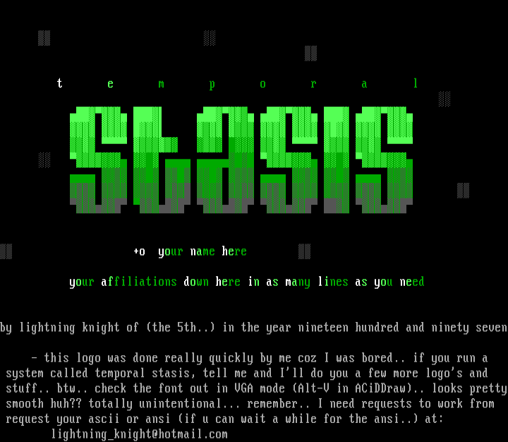 stuff.. btw.. check the font out in VGA mode Alt-V in ACiDDraw.. looks pretty smooth huh?? totally unintentional... remember.. I need requests to work from