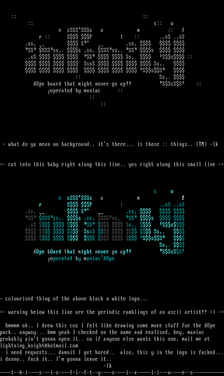 - warning below this line are the periodic ramblings of an ascii artist!! -
