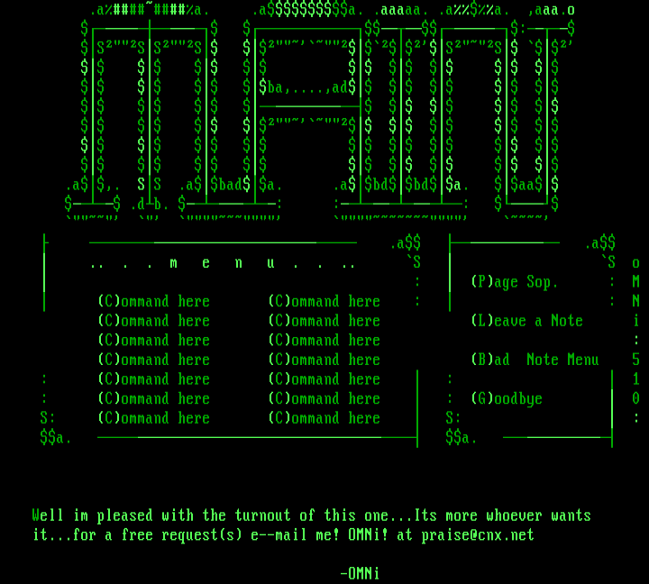 it...for a free requests e--mail me! OMNi! at praise@cnx.net