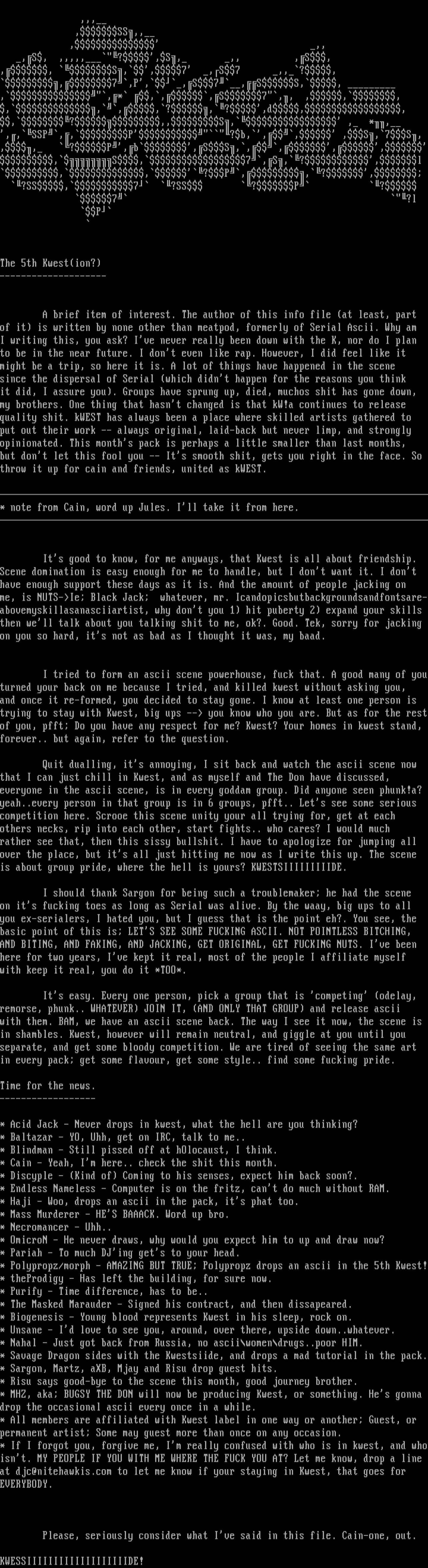 I tried to form an ascii scene powerhouse, fuck that. A good many of youturned your back on me because I tried, and killed kwest without asking you,