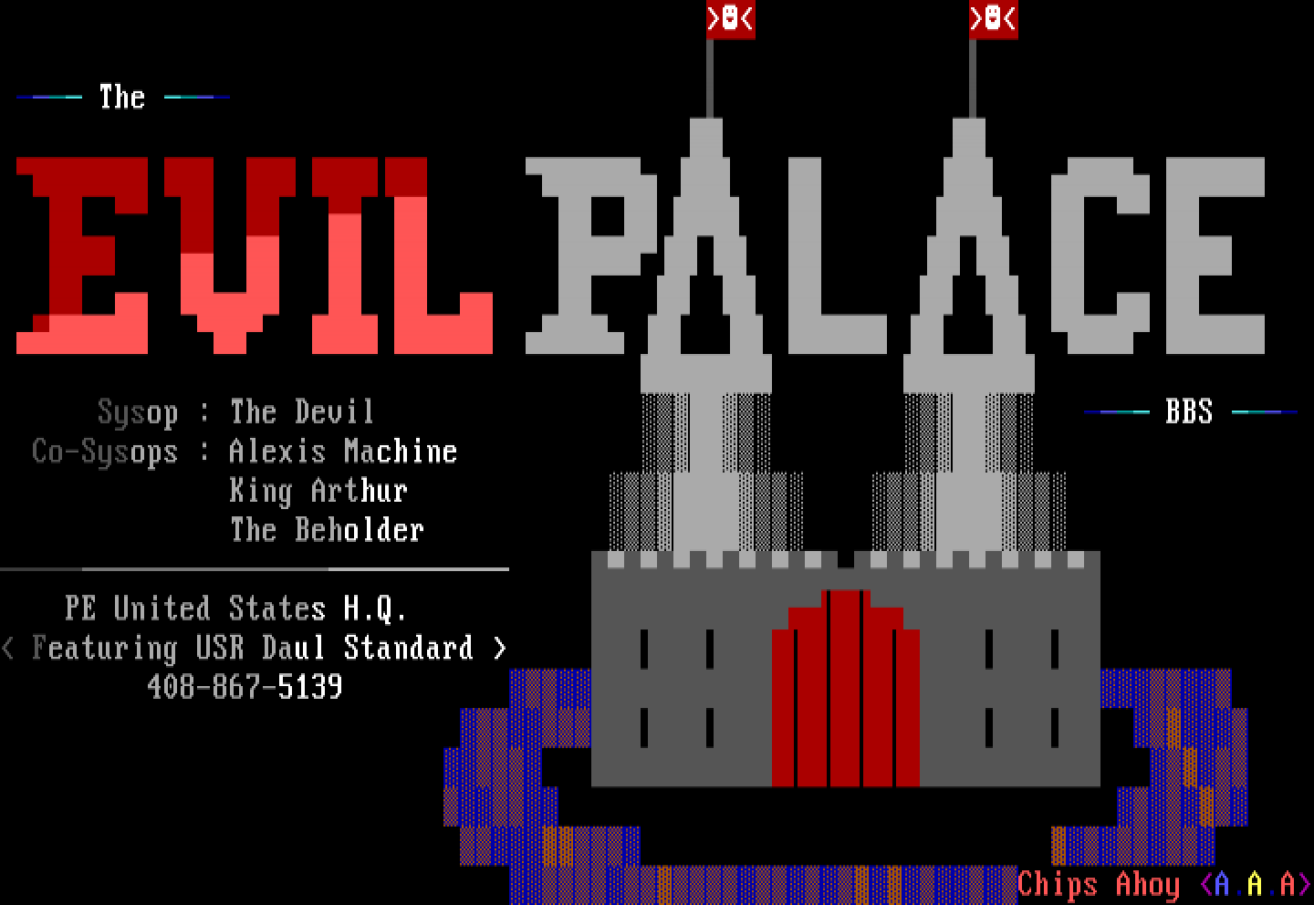 The BBS Sysop:TheDevilCo-Sysops:AlexisMachineKingArthurTheBeholder FPeEatUunriitneg4d0U8SS-tR8a 6tD7ea-su5l1H3.S9Qt.andardChipsAhoyA.A.A