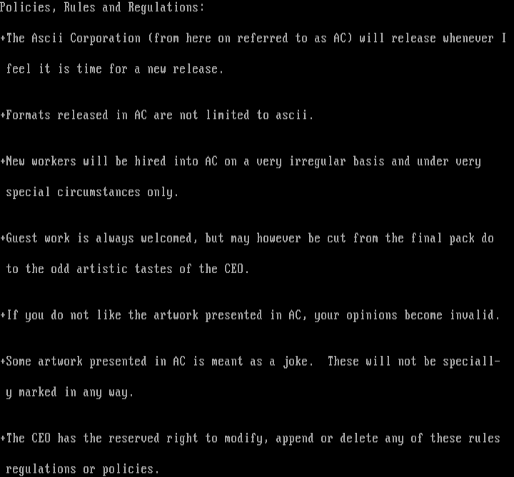 +The Ascii Corporation from here on referred to as AC will release whenever I