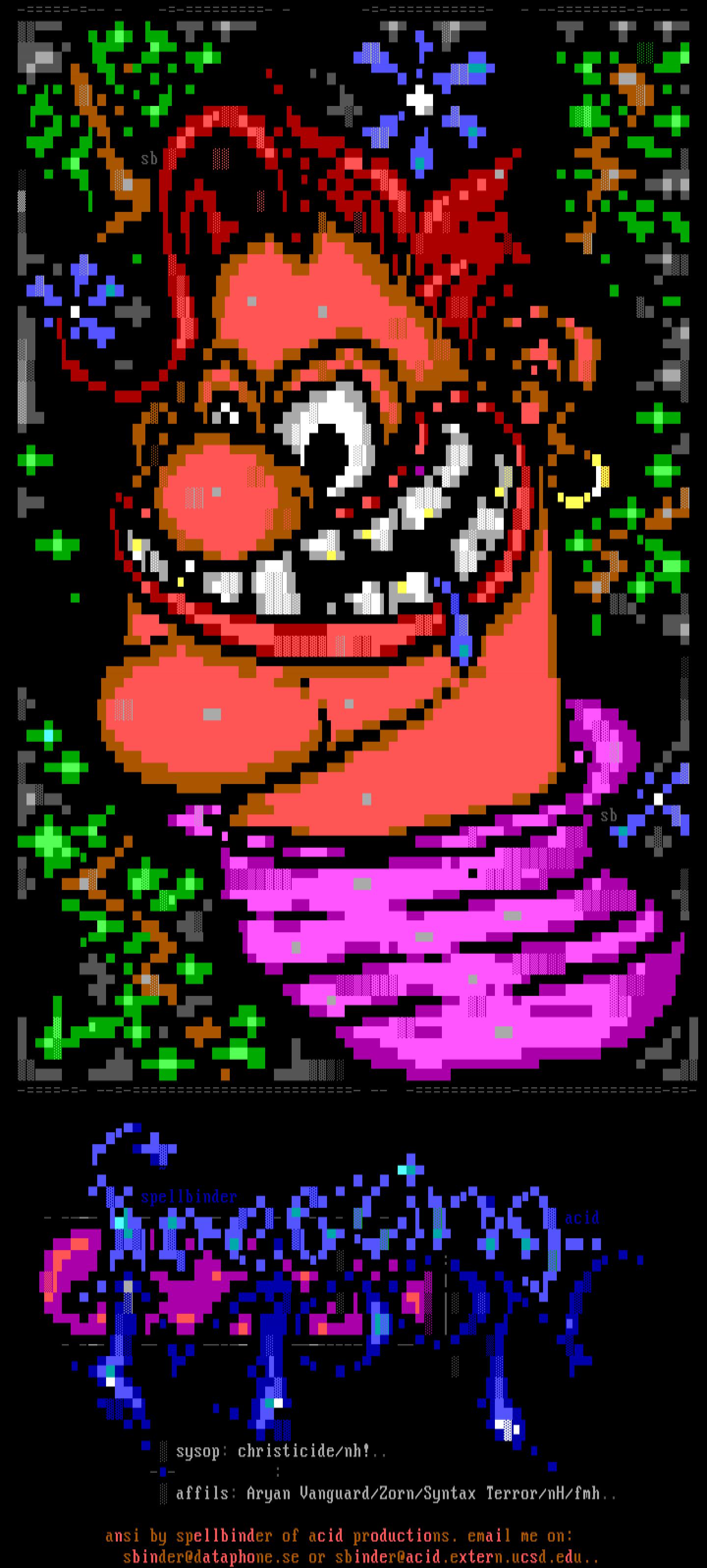 affils: Aryan Vanguard/Zorn/Syntax Terror/nH/fmh..